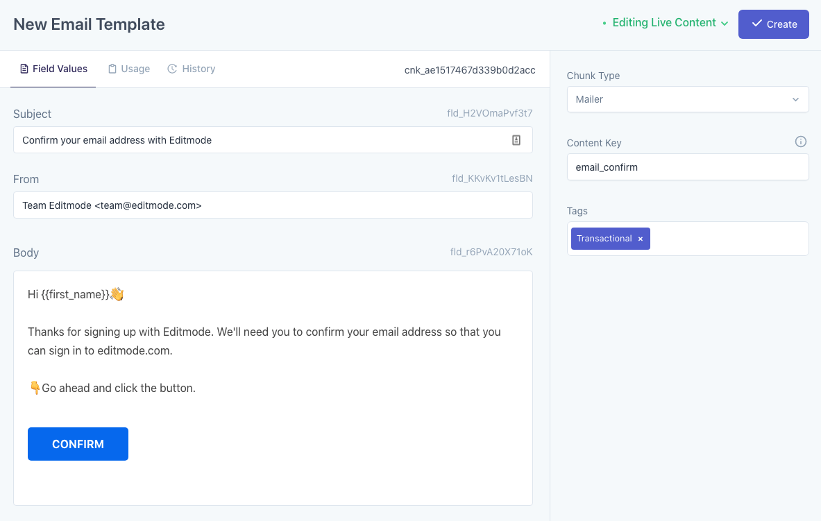 Using Editmode for transactional email content in Rails